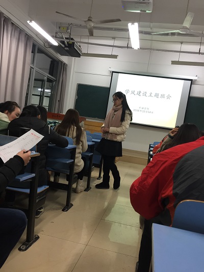 | 12月14日,bwin必赢中国官网2014级学风建设主题班会与考前辅导在翡翠湖校区八教303召开。活动由年级辅导员主持,年级全体学生参加了本次会议。 本次会议旨在通过重温我校学风建设管理有关规定和辅导学业,引导学生强化正确的考风考纪观念,合理有效规划期末考试,促进学院优良学风建设。 会议共分为五个部分。首先由年级辅导员结合学风建设案例,引入本次会议主题;然后由班级委员带领班级同学分组讨论,探讨学风建设面临的困境,结合学生手册,针对最迫切需要解决的“考场作弊”问题,提出三条“公约”,一是手机不带入考场,二是不提前占座,随机安排座位,三是不使用纸条等作弊工具;其次,每位同学写下期末考试课程和考试时间,辅导员指导学生根据课程学分、难度、个人能力合理规划复习时间,以“毅力和良好的心态”提前进入期末考前复习期;随后,辅导员结合自身的英语专业背景,对学生期末考试课程进行备考指导,有效提高了本次班会的效果;最后,辅导员对本次班会进行总结。 本次班会,紧密结合三年级学生特点,围绕学生兴趣,突出班会主题,注重班会实际效果,有效促进了优良学风建设。(陈贞/文、黄琦、朱翊尧/图)