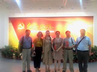 为庆祝中国共产党诞辰97周年,对党员进行“不忘初心,牢记使命”主题教育,7月11日上午九点研究生英语教学部党支部党员教师们在安徽博物院老馆参观了“红旗飘飘-——中国共产党党旗诞生历程珍贵档案展”。