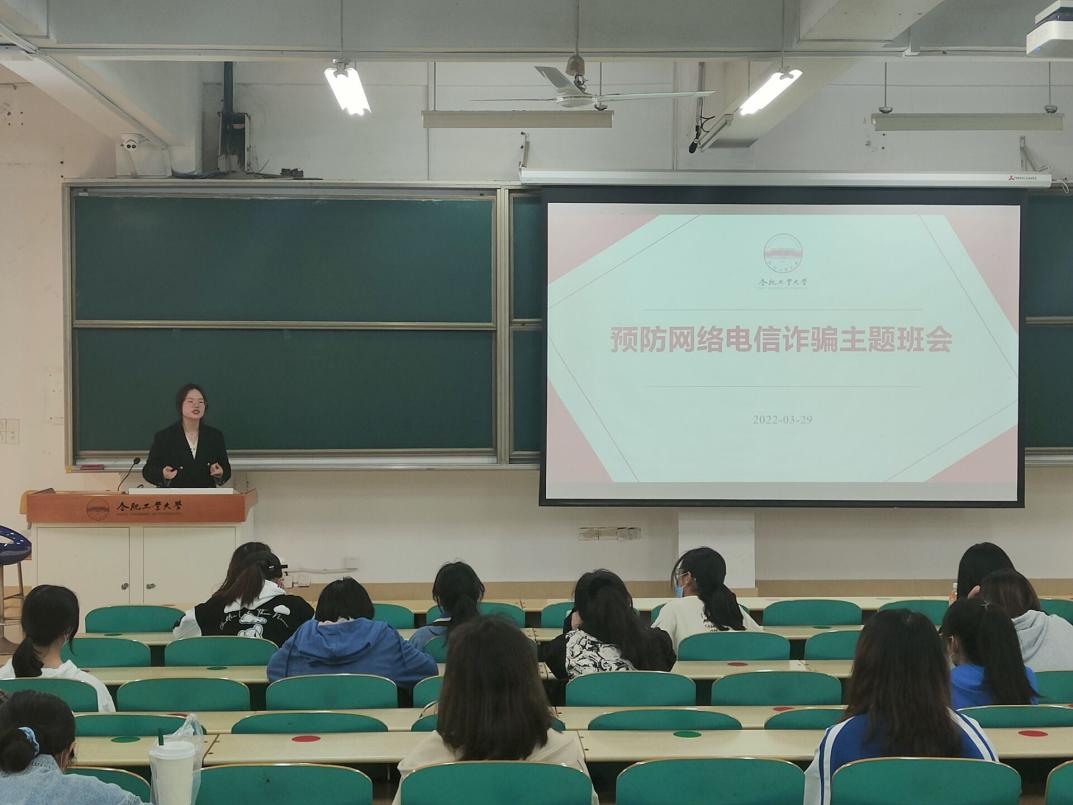 落实主题教育全覆盖。3月29日-4月3日,学院召开22场防诈骗主题班会,结合近期高校发生的典型案例,重点介绍了假冒公检法诈骗、兼职刷单诈骗、网络购物诈骗、冒充领导、熟人诈骗等九类常见诈骗方式,并介绍防范电信诈骗的有效措施,提醒全体学生增强防诈骗意识,提高自我防范能力。
