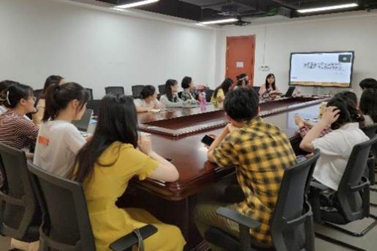 肖老师首先介绍并强调了翻译硕士学位的特点和人才培养目标,指出翻译实践环节在整个翻译硕士培养阶段的重要作用,接着从实习方式、实习内容、实习时间、过程管理、成果考核等方面向同学们做了具体说明,鼓励同学们抓住实践机遇,切实提高自身的翻译专业素养和综合职业能力。译创朱总从行业视角出发,围绕“翻译的实际应用场景”“翻译专业的职业导向”“翻译的价值”等内容,十分细致地向同学们讲授了译创公司在翻译暨语言出海服务、翻译项目管理、翻译人才培养等方面的主要内容和特色,并从业务型和专业型角度向大家展示了企业的人才需求和培养理念,让同学们对翻译实践和未来就业有了更深入的了解。传神祁老师基于公司“轻打标-轻翻译-轻审核”的实训平台,向同学们多方位展示了传神的业务范围及本次实习提供的岗位类别、要求及薪资情况,同时提供了为我院MTI研究生专设的线上微信群号,旨在帮助同学们后续跟进了解相关实践内容。合肥群音桑老师对公司的业务范围尤其是在语音语言数据信息的收集处理、加工储存、技术研发等方面做了介绍,对本次实习所能提供的岗位类别、人数、工作要求和薪资待遇等做了展示,同时提供了适用于不同岗位类型的实习招募渠道,便于校企合作的尽快开展。