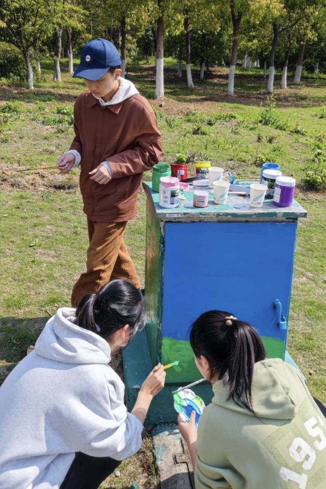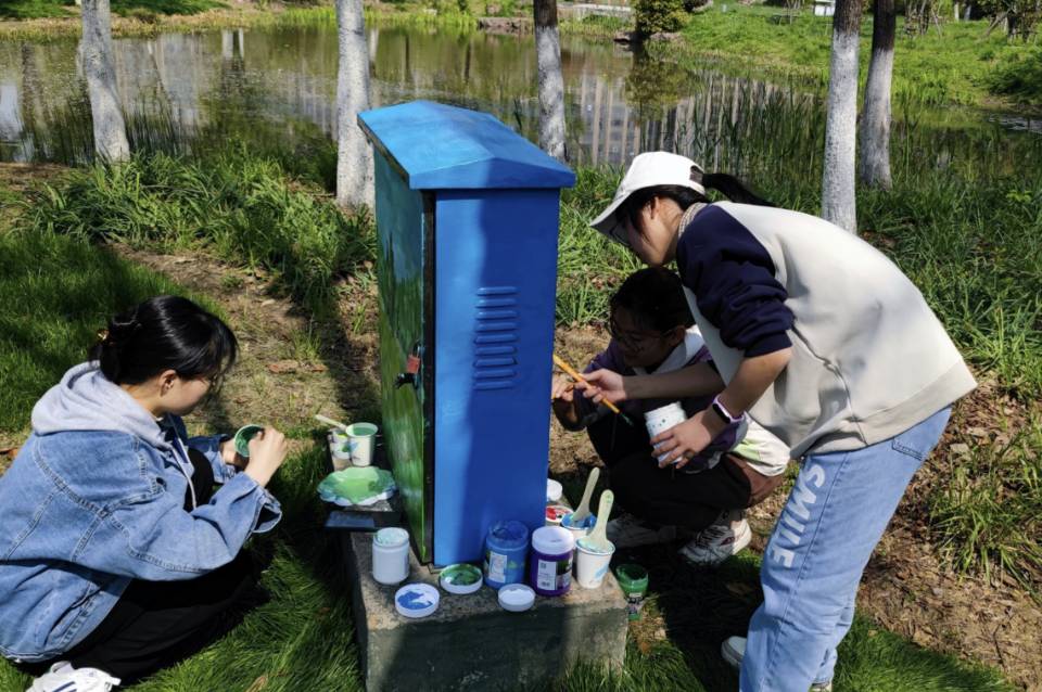为美化城市环境,助推文明城市创建,4月8日,bwin必赢中国官网晨风社联合校书法协会前往合肥市南艳湖公园开展“电箱新衣,城市美景”主题绘画志愿活动。