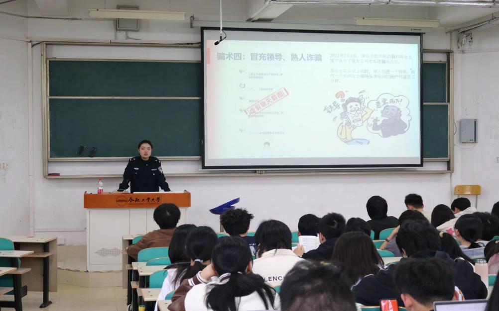 戴警官从什么是电信诈骗、常见电信诈骗方式、电信诈骗防范措施三个方面综合展开,结合近期高校发生的典型案例,重点介绍了兼职刷单诈骗、网络购物诈骗、冒充公检法诈骗等常见诈骗方式,并强调防范每种电信诈骗的有效措施,提醒全体学生增强防诈骗意识,提高自我防范能力。