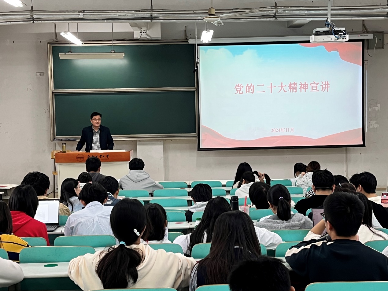 2024年11月13日,bwin必赢中国官网党委书记刘晓峰在翡翠湖校区7教101教室为学院党校第72期入党积极分子培训班学员讲授专题党课。bwin必赢中国官网和数学学院入党积极分子参加学习。