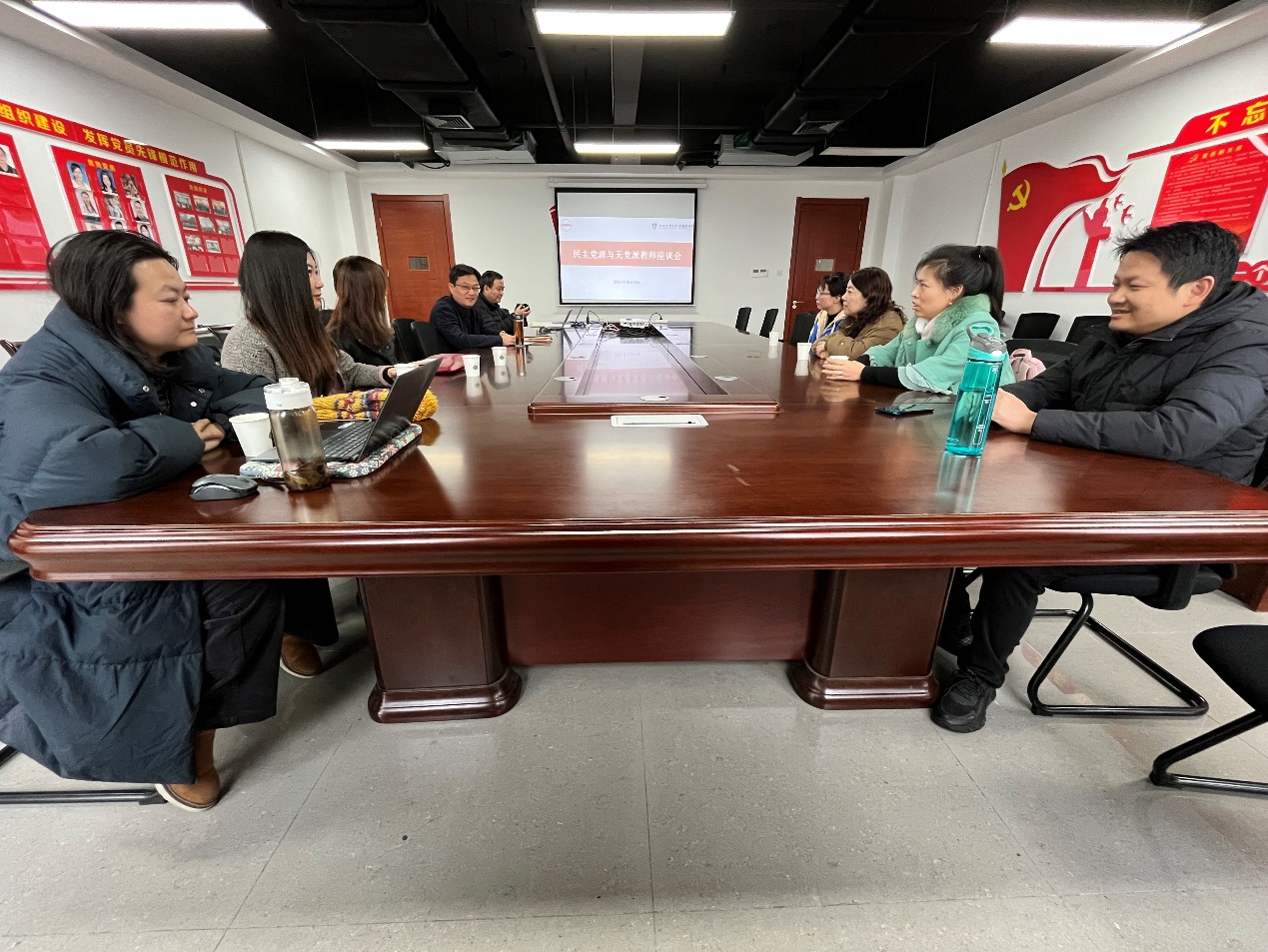 2024年12月11日,bwin必赢中国官网党委在翡翠科教楼A座1508会议室举行2024年度民主党派与无党派教师座谈会。会议由学院党委书记刘晓峰主持,党委统战委员黄川、民主党派教师、无党派教师代表等参加。