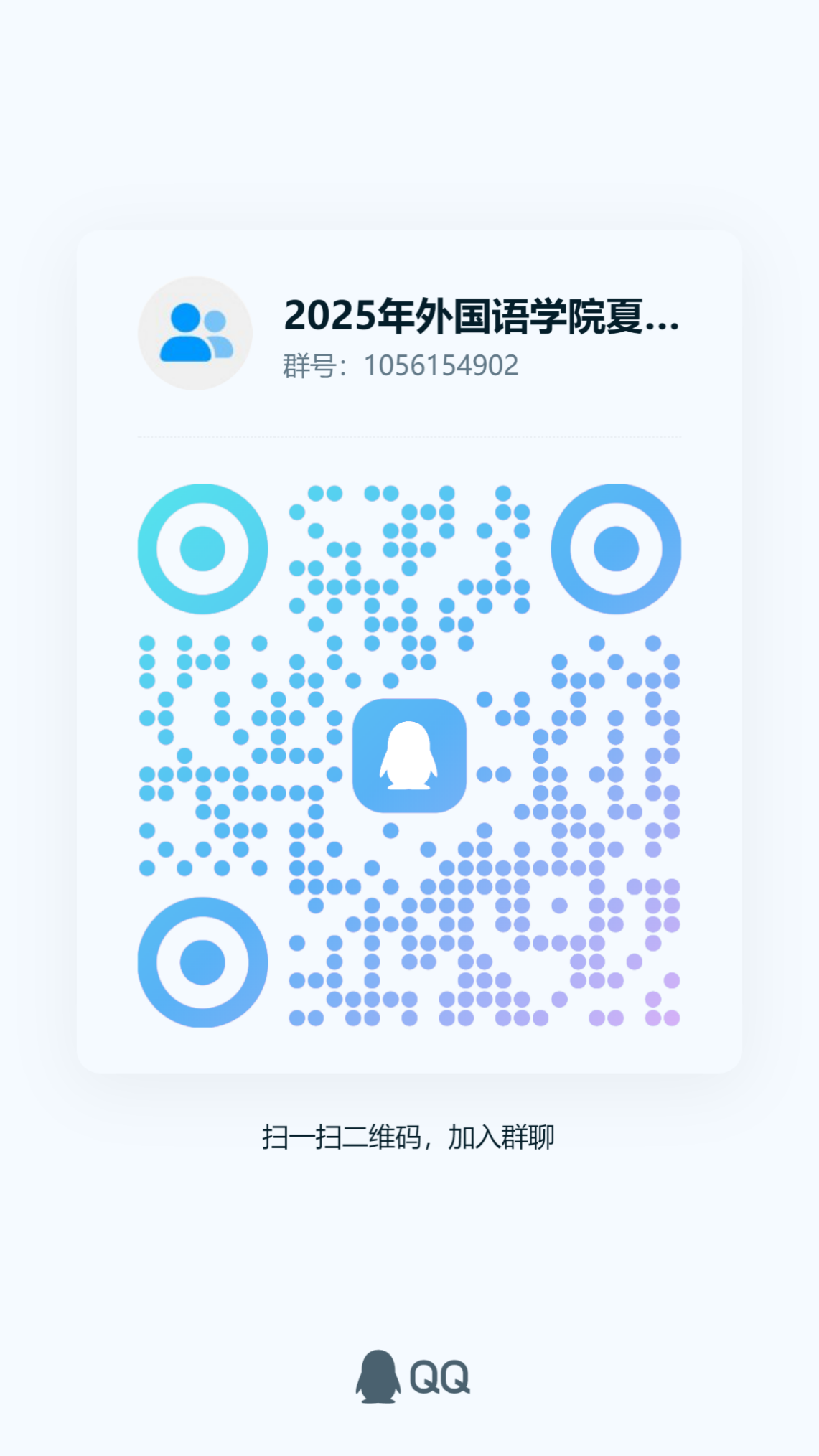 请入围同学加入QQ群:1056154902,申请加群时请备注“拟申请专业+姓名”。截至7月9日(本周三)下午18:00,未加入QQ群的同学,视为自动放弃。